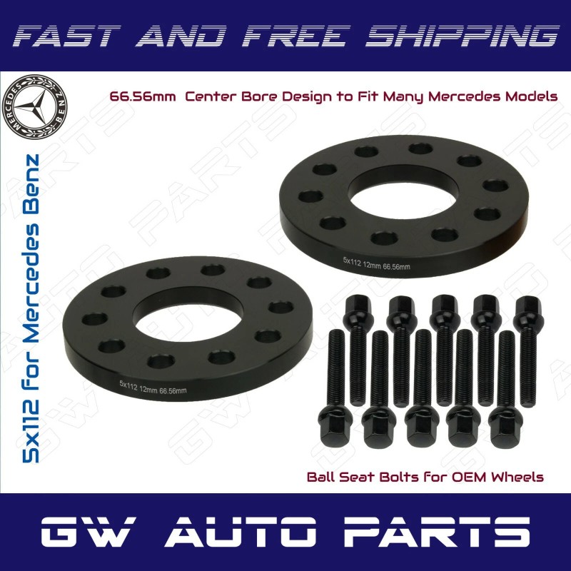 BWA 2 12mm 5x112 Mercedes Front Hub Spacers 66.56mm Kit Fits W211 E Series 2003-2009