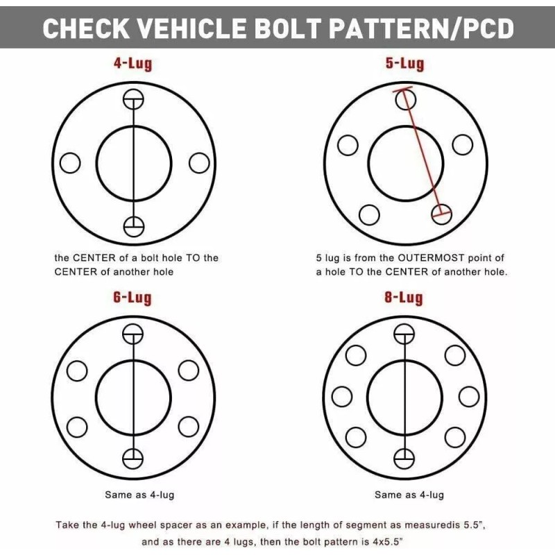 ● Please double check bolt patterns of your vehicle and wheels to be installed before purchasing