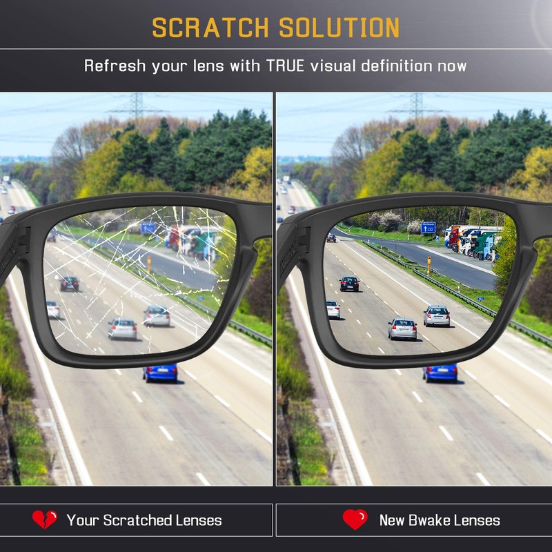 - √ 3 SECS INSTALLATION - Wonder if a kid can replace the lens successfully? 3 Seconds is enough to snap Bwake Replacement Lenses on your frame. Precision-cutting guarantee the perfect fit to match your original Oakley frame 100%