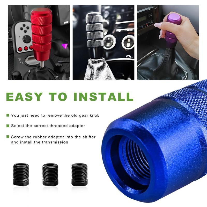 - Wide Adaptation: This excellent shift knob includes 3 adapters, size M8 × 1.25, M10 × 1.5, and M12 × 1.25, so it has a wide range of compatibility and is suitable for most manual transmission vehicles and some auto vehicles equipped with a removable shifter, such as cars, trucks, SUVs, sedans, etc