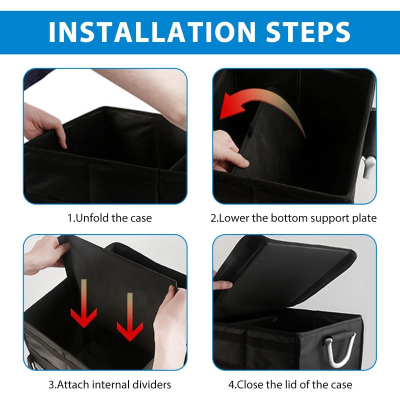 - Thoughtful Design: Equipped with a removable base plate, a center divider and a cover, this car storage organizer is easy to flexibly adjust the interior space according to the shape and number of items. Besides, the aluminum handles on both sides make it easy to move and carry around