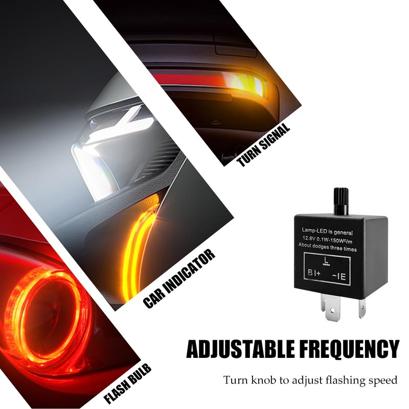 BWBWND CF13 LED Electronic Flasher Relay, 12V 3-Pin CF13 EP34 Turn Signal Relay Fix w/Speed Adjustable Function, Auto Light Bulb Relays for Led Lights Hyper Blink Flash No Flash Problem