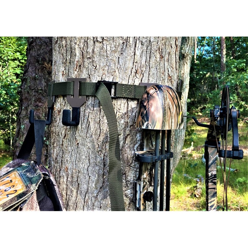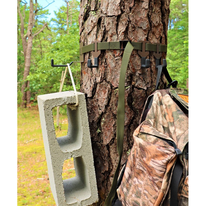 - N0 Plastic Parts - All Quality Metal Construction. No More Worries, about hanging your Bow, heavy Pack or valuable Camera and Binoculars on a weak screw in hook or plastic hook and plastic buckle assembly. The Perfect Hanger for Saddle Hunting, Mobile Hunting, and all Treestand Hunting - On your Tree faster than 1 Screw-In Hook -Make Your Set Up Simple! The End of Screw-In Frustration!