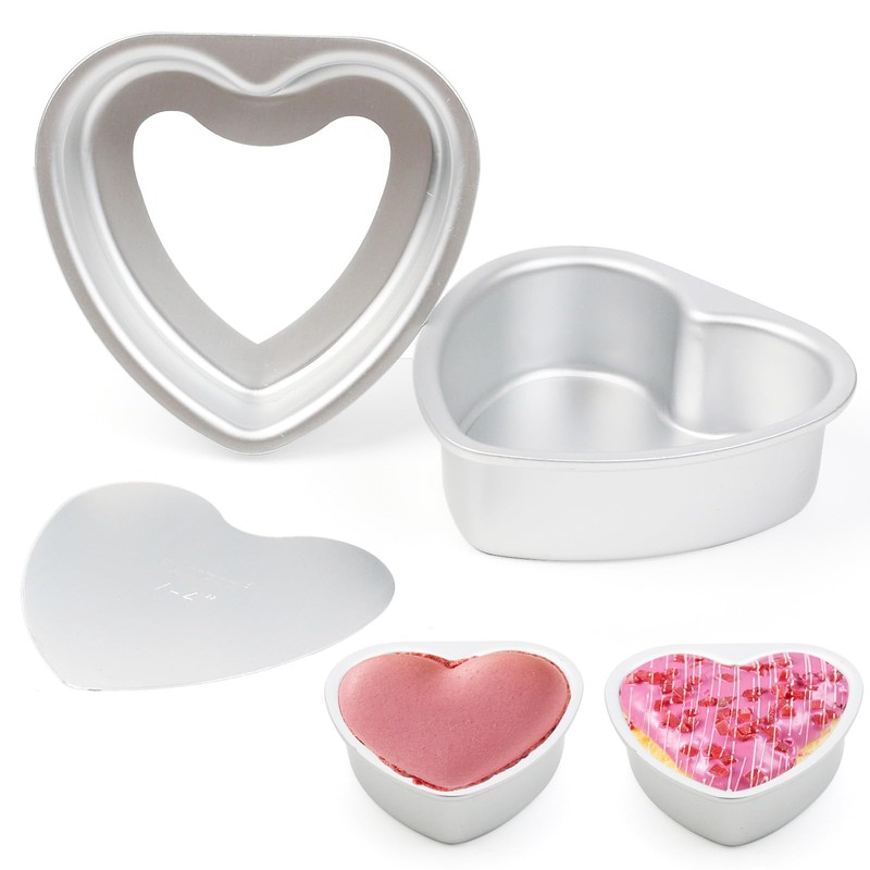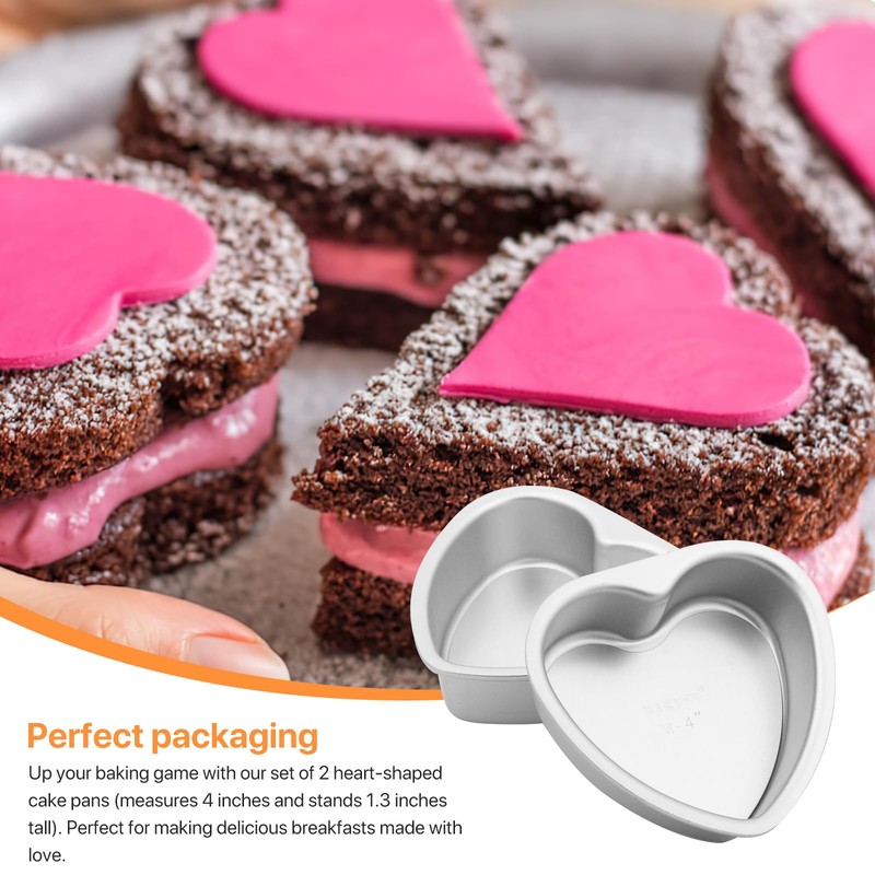 Bwetomk 2PCS Air Fryer Egg Moulds, Ramekins for Air Fryer, Nonstick Egg Rings Molds, 4 Muffin Cases Dishes for Air Fryer, Poached Egg Moulds, Heart Mold for Baking Breakfast, Sandwiches, Silver