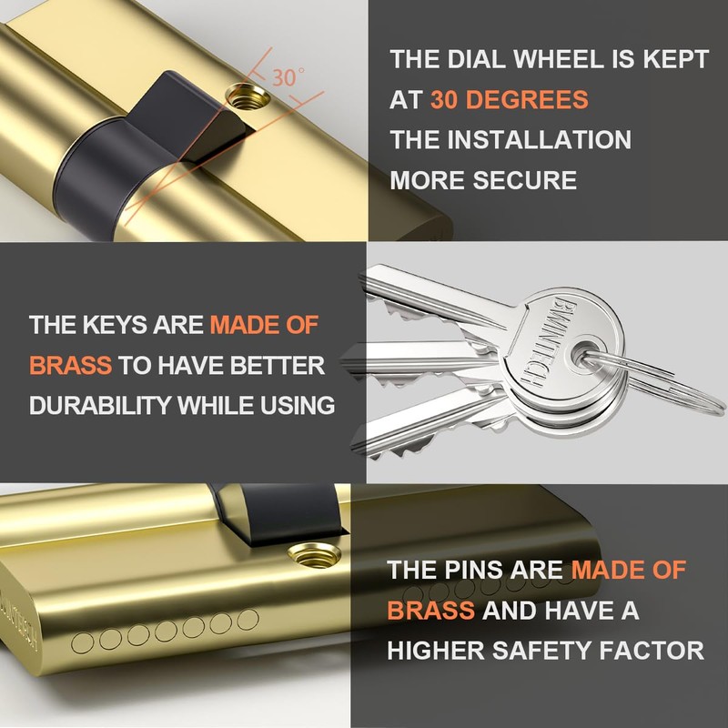 - High Security: Our lock cylinder has a variety of stable security functions, the lock cylinder and key made of solid pure copper have the functions of Anti-picking, Anti-drilling, Anti-snap, Anti-Bumping, and also fireproof characteristic.