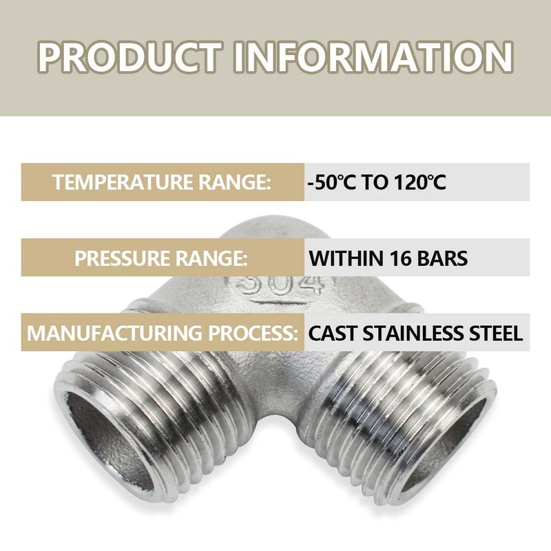 【Quick Installation】:It is recommended to wrap the raw material tape on the threaded port before connecting, and the corresponding thread can be used after screwing in, without the trouble of leakage.-Specification-Material:stainless steel Connector: BSP thread-Package Includes-3 pcs pipe connectors