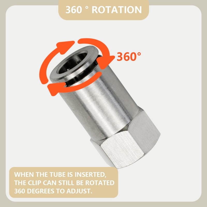 - 【Easy to Intall】 No extra sealing is required, just a simple push to connect to the tube and they are tightly connected. In addition, those fittings are flexible and space-saving, 360-degree rotate freely.