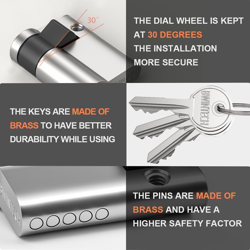 - High Security: Our lock cylinder has a variety of stable security functions, the lock cylinder and key made of solid pure copper have the functions of Anti-picking, Anti-drilling, Anti-snap, Anti-Bumping, and also fireproof characteristic.
