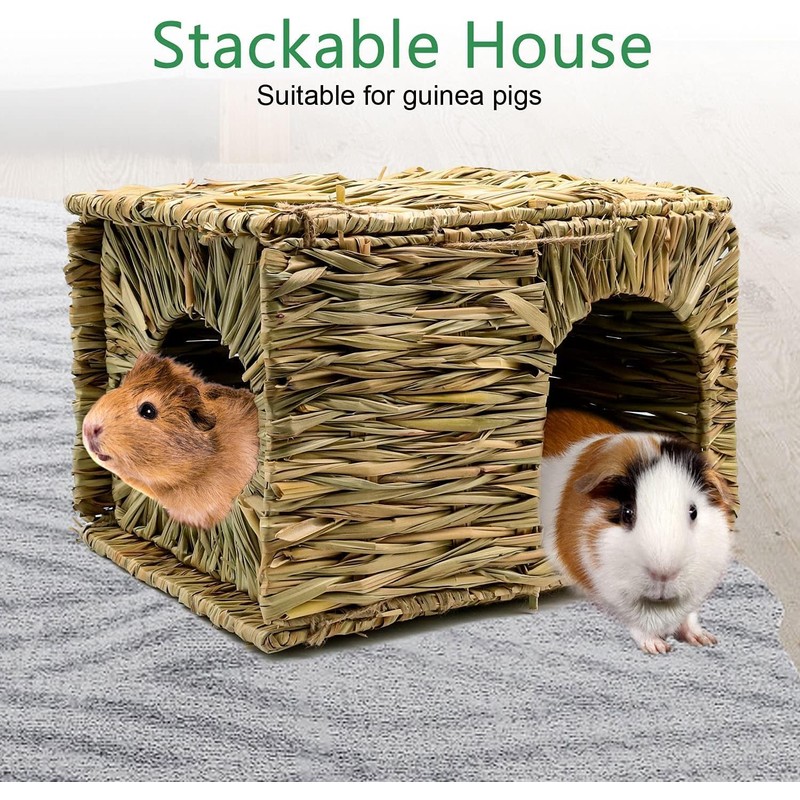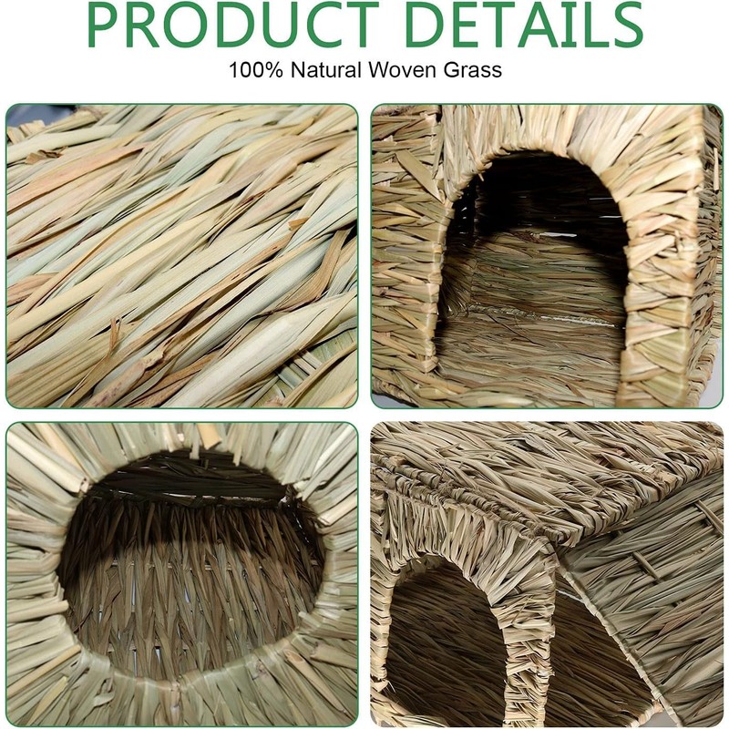 - Hand Woven Grass: This guinea pig hut is made of 100% all natural raw materials, hand-woven grass, safe and edible.Most rabbit and guinea pig love chew and dig bed,your pet will love spending hours exploring, foraging and chewing in this hut.Natural grass weave, cool in summer and warm in winter.