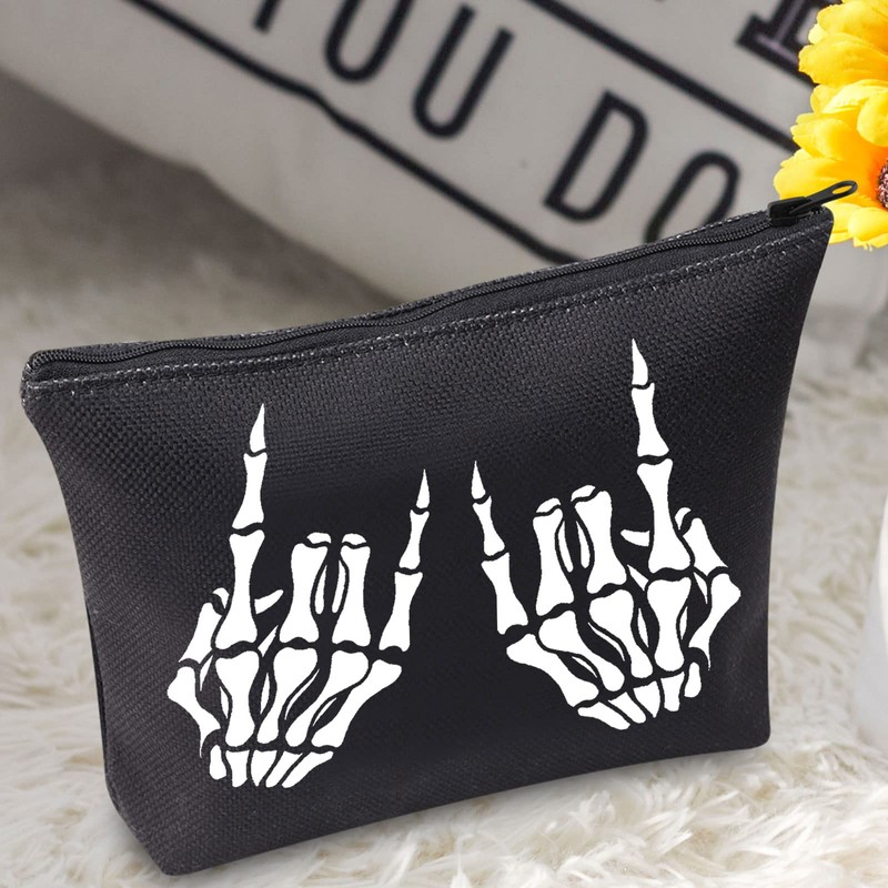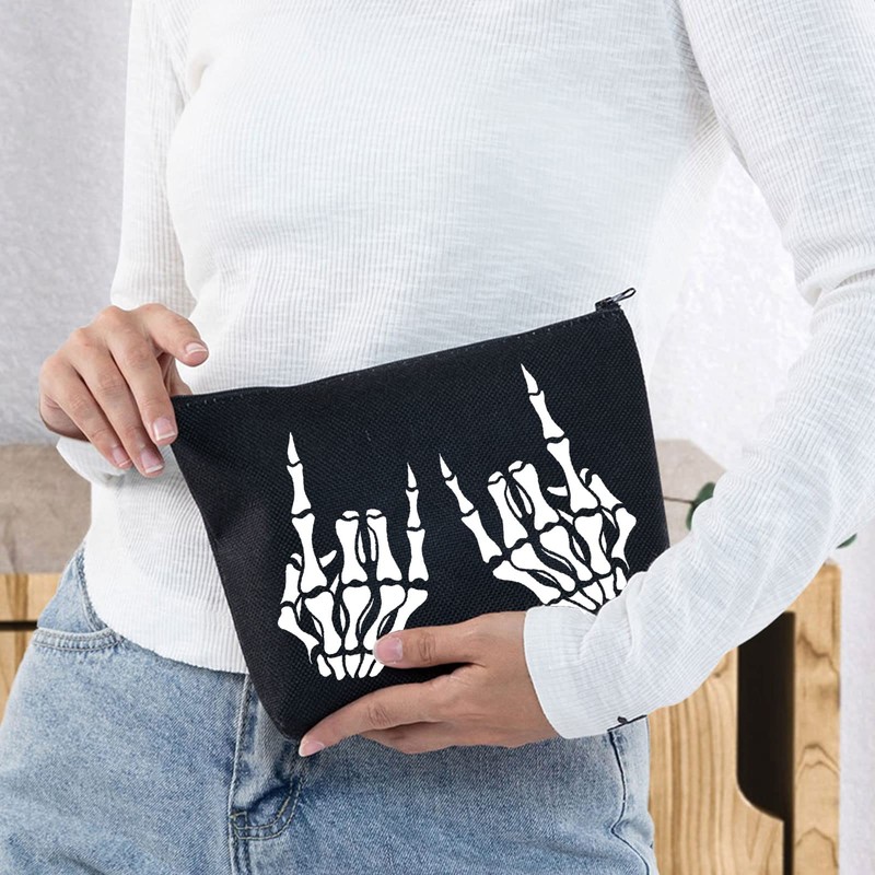 BWWKTOP - Bolsa de maquillaje para manos de roca con esqueleto, diseño de manos de cráneo de roca, regalo con esqueleto, roca, con cierre, bolsa de esqueleto, Mano de roca esqueleto, Bolsa