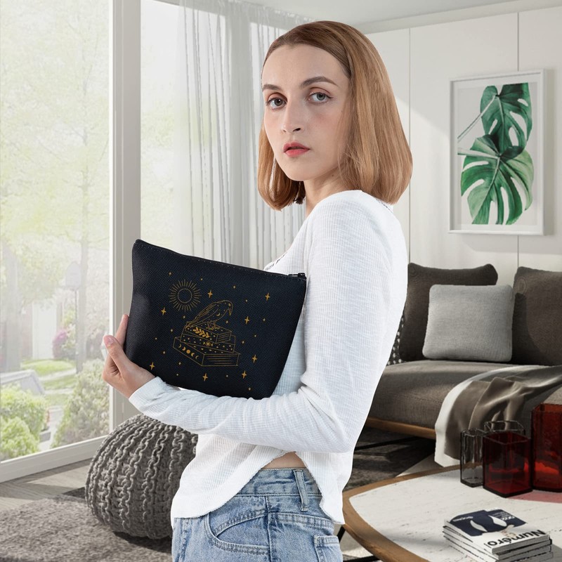 BWWKTOP Crow Cosmetic Makeup Bag Book Lover Gift Crows Zipper Pouch Bag For B...