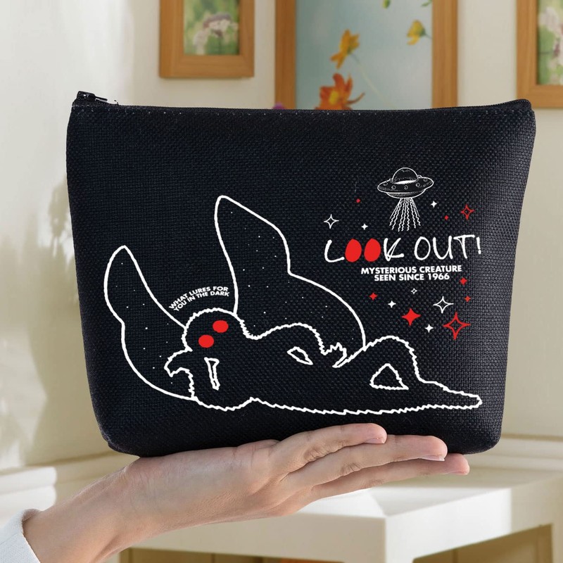 BWWKTOP Mothman - Bolsa de maquillaje para cosméticos Mothman Cryptid Criature Gifts Look Out Out Mysterious Criature Seen from 1966 Zipper Pouch Mothman Merchandise, Criatura misteriosa, Bolsa