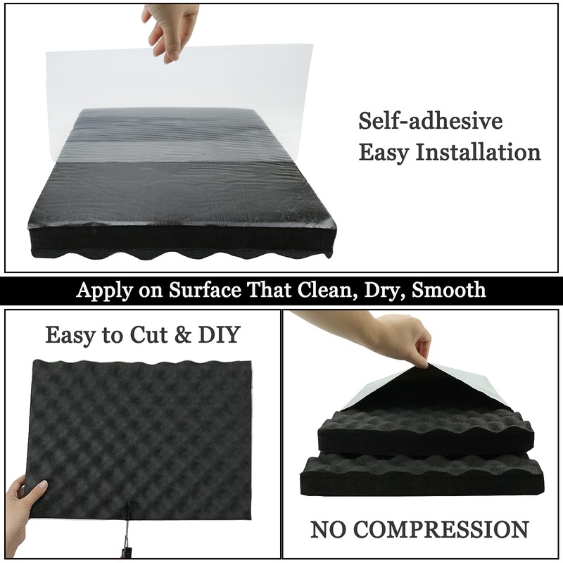 - 【EASY INSTALLATION】: This sound barrier has strong self-adhesive backing, and is easy to cut for diy. It's flexible, waterproof, and super light, can be used no matter indoors or outdoors