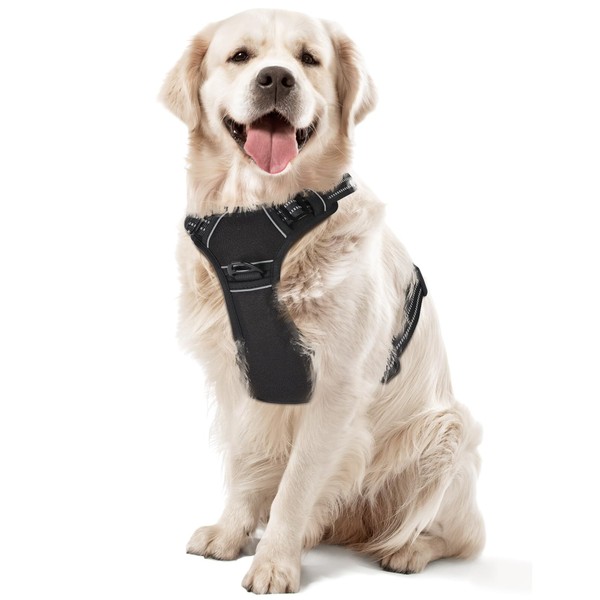 BXPAW Dog Harness,No Pull Pet Harness Adjustable Reflective Pet Harness Easy Control Handle for Small to Large Dogs Soft Padded Puppy Vest (Black, Extra Large)