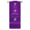 BY LORA Custom Embroidered Terry Cotton Ring Spun Bath Towel, Hand Towel and Washcloth Set - Purple Towel Set, White Chancery Initial B