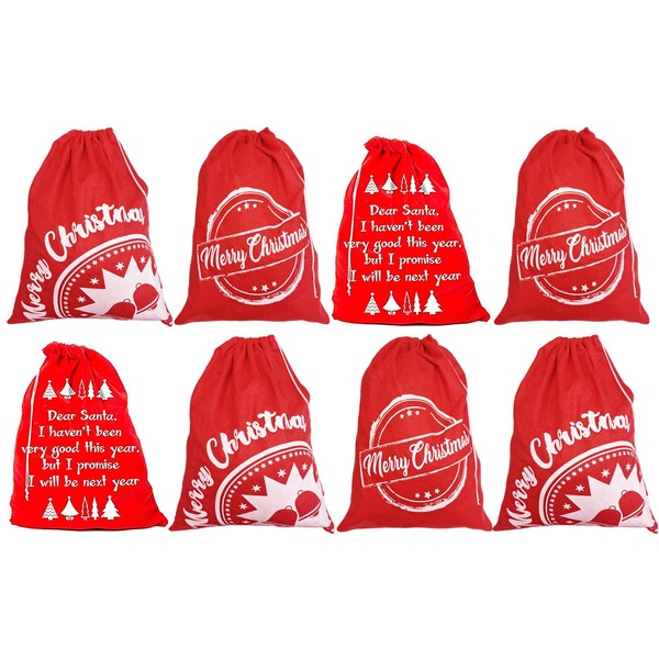 by Robelli Set of 8 Assorted Red Santa Sacks