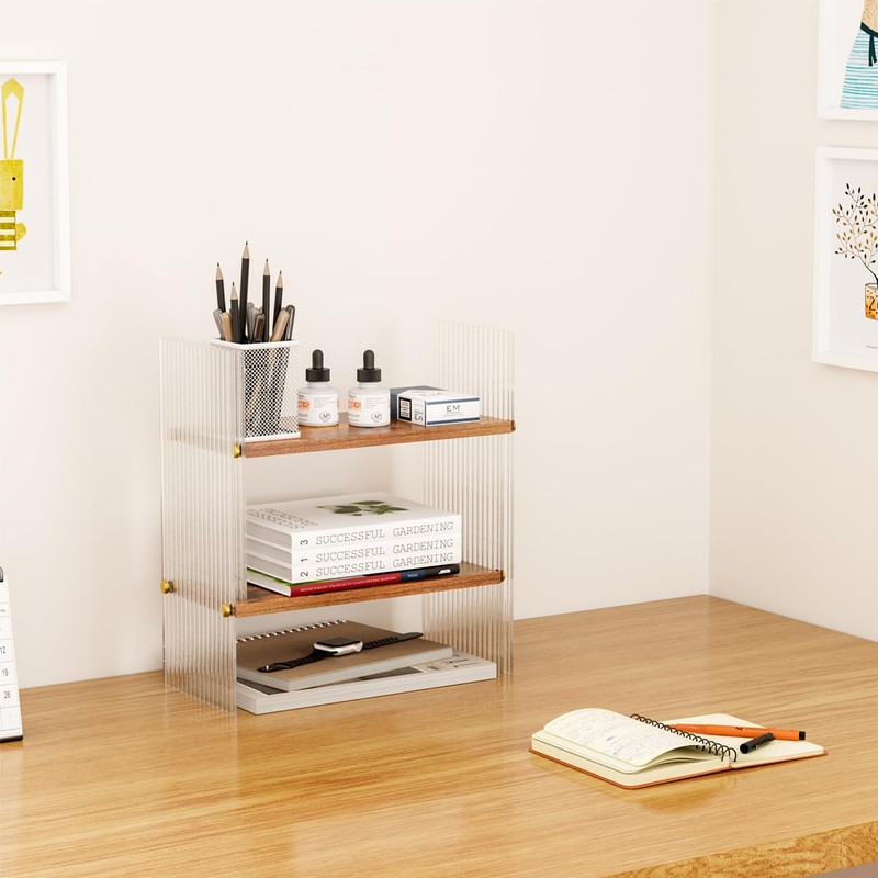 - 【High-grade Material】The desktop bookshelf is made of natural wood with solid acrylic panels on the sides that do not reduce the strength of the shelf. This desk -organizer and accessories are paint-free and chemical-free, allowing you to have a healthy working and living environment.