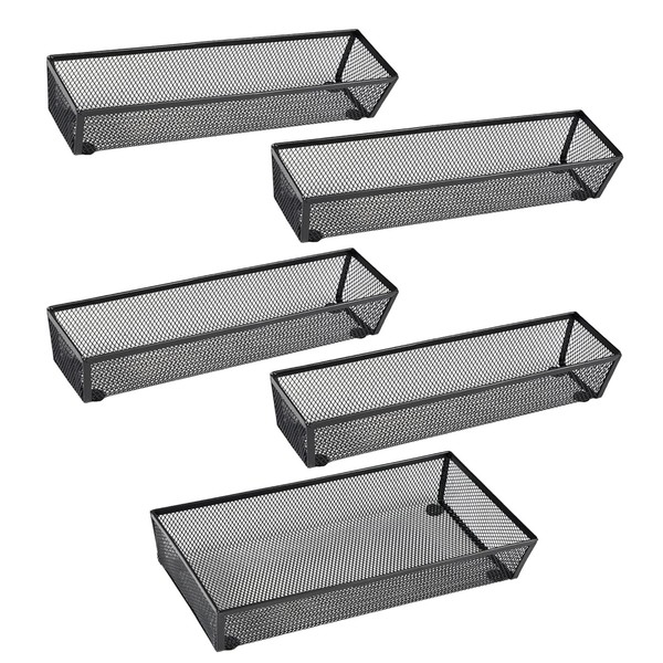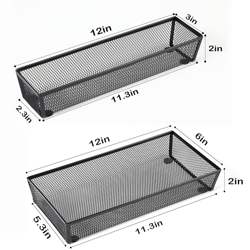 BYCY Silverware Drawer Organizer, Mesh Utensil Organizer for Kitchen Storage, Black Steel Metal Mesh Tray for Flatware Fork Spoon Knife… (12 * 3-5P-Black)
