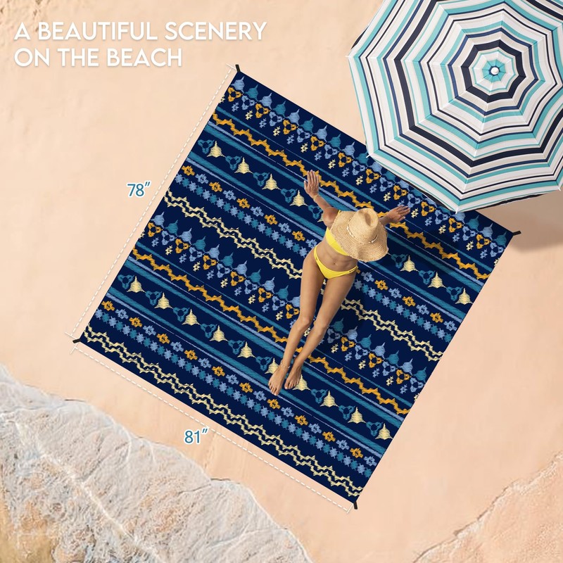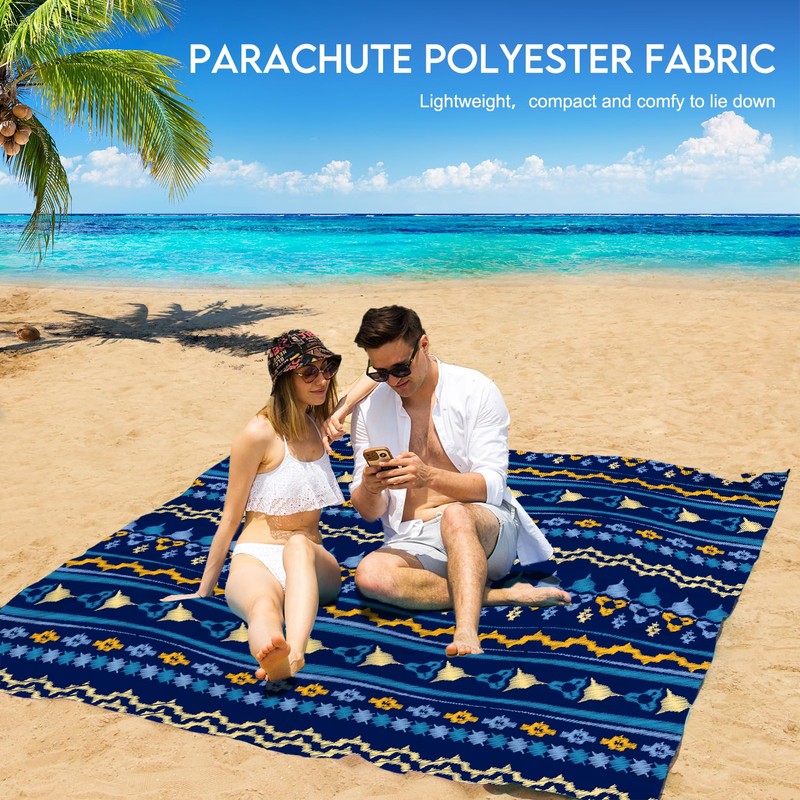 - 🏖️Beach Blanket Waterproof Sandproof:78''×81''size beach blanket,suit for 1-5 adults in total,odorless,made by parachute fabric.Rip-stop 210T polyester,light weight and small after folding.12 oz easy to carry,small and mighty!