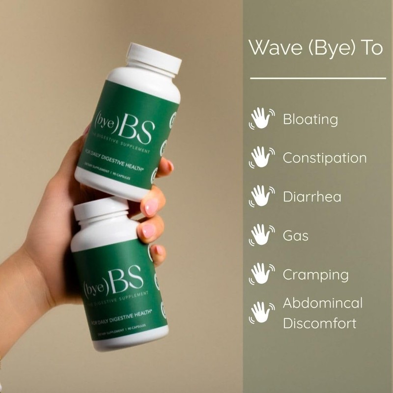 ByeBS Digestive Support Supplement – Psyllium Husk, Slippery Elm, Peppermint Extract & L-Glutamine – Gut Health, Bloating & Constipation Support, Intestinal Lining & Bowel Function