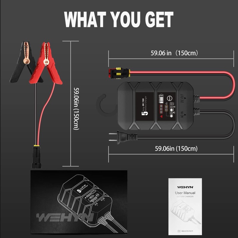 - 【Do More with S5000】 5A Smart Car Battery Charger Designed for 6v and 12v sealed lead-acid automotive, marine, RV, powersport, and deep-cycle batteries, including flooded, gel, AGM, SLA, VRLA and maintenance-free, plus lithium-ion batteries (lifepo4).