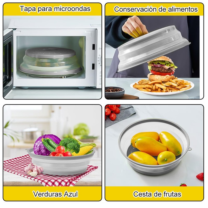 - ★【Ampliamente Usado】La tapa para microondas no sólo protege de las salpicaduras, puede utilizarse como conservador de alimentos, cesta para frutas, cesta para verduras, tapa para microondas, todo en un mismo lugar.