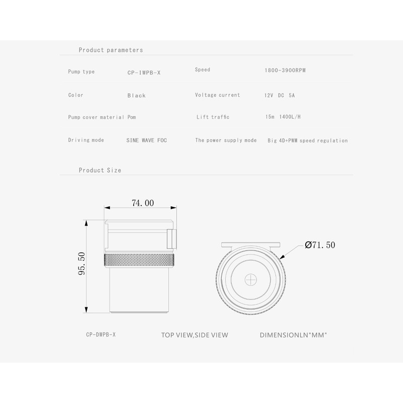 Bykski CP-DWPB-X High-Performance Industrial Grade PWM Water Pump - 1400L/H Flow Rate for Custom Watercooling Cooling Systems (CP-DWPB-X)