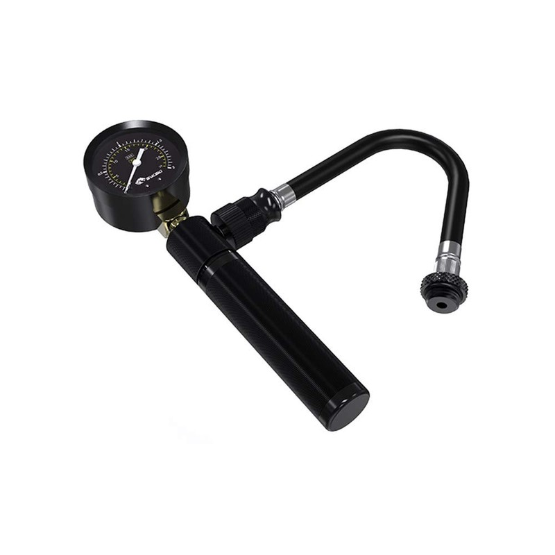 - The main body is a solid piece of CNC machined aluminium. One end is equipped with a rotatable G1/4" connector so it can be screwed directly into any standard port of your liquid cooling. The gauge is specially designed for testing purposes of liquid cooling, which clearly marks the safe pressure for testing. The other side of the tester is connected to a valve that ensures that no air escapes through the test unit itself. The small pump for printing the loop is a