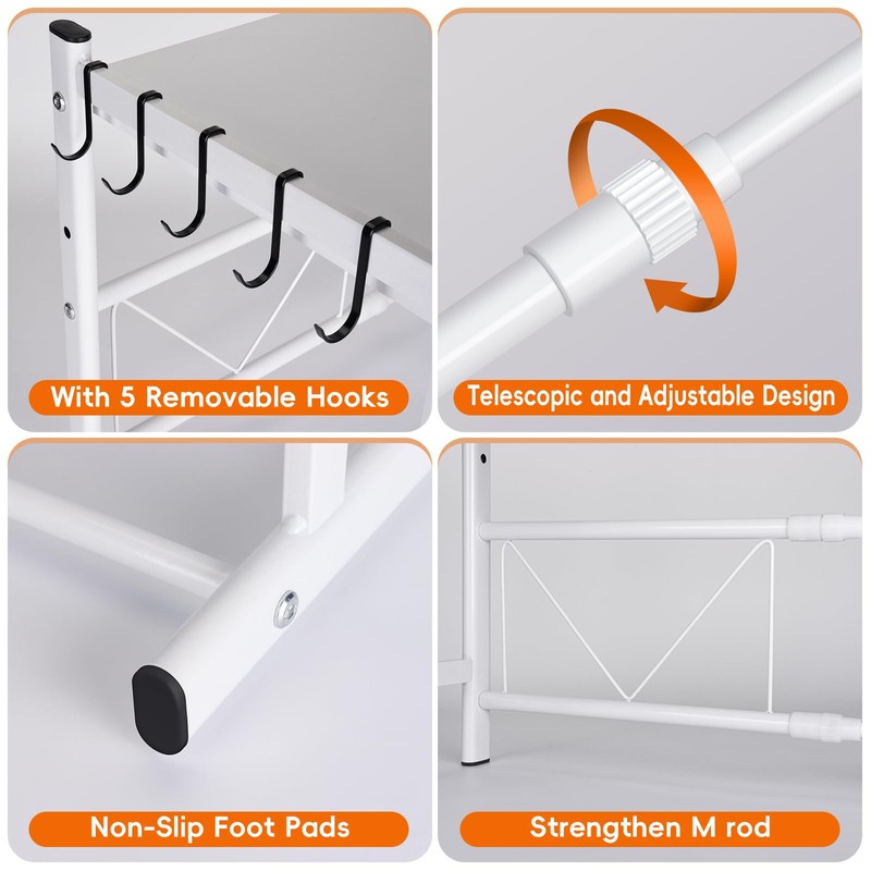 - Expandable Microwave Counter Stand: The microwave shelf countertop is expandable from 14.2"-23.6" in length and two levels of adjustable height, you can easily adjust the rack height and length to store a microwave oven or other kitchen appliances for saving space according your needs.