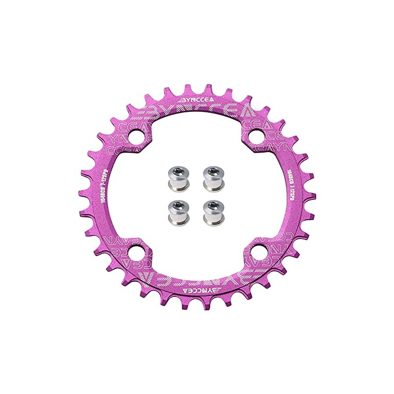 - Weight:32T/45g,34T/50g,36T/60g,38T/65g.Package Includes:1 x 104BCD Narrow Wide Chainring;4 x Single Chainring Bolts
