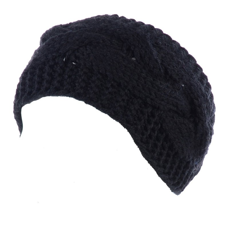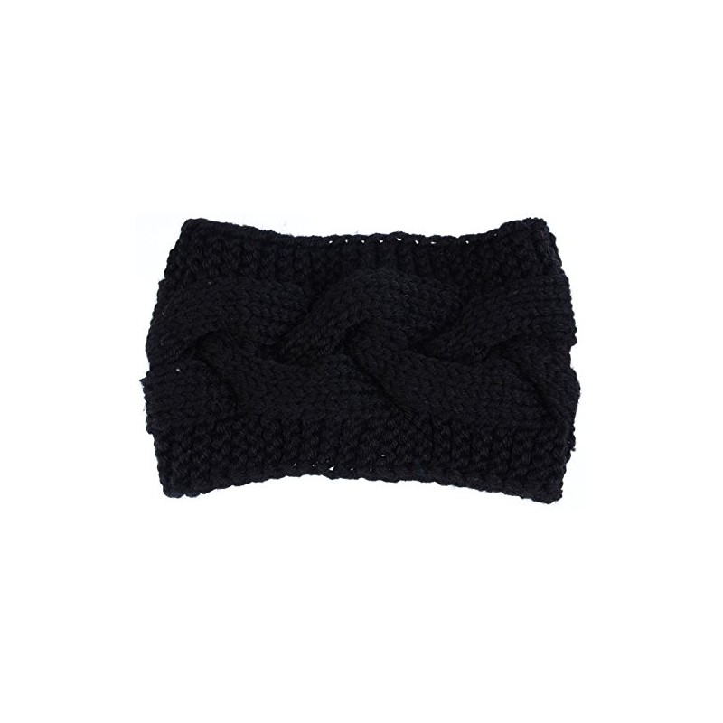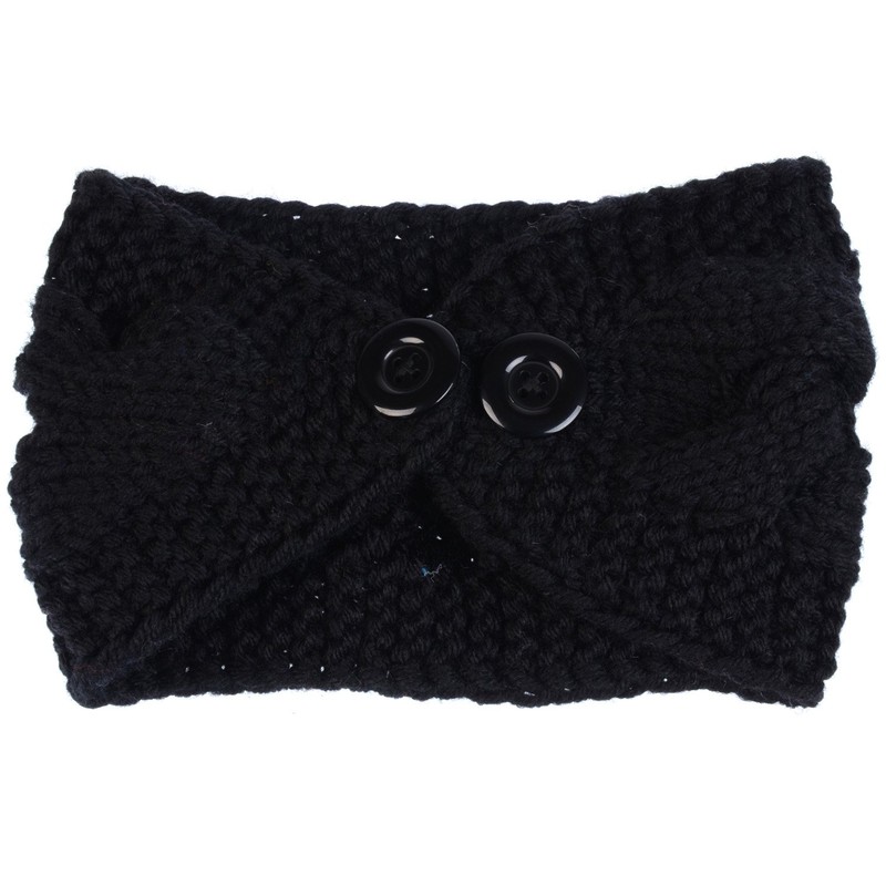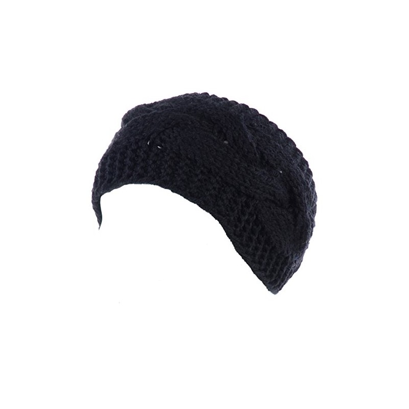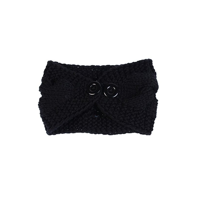 BYOS Womens Fashion Winter Cable Crochet Knit Headband With Adjustable Button (Black)