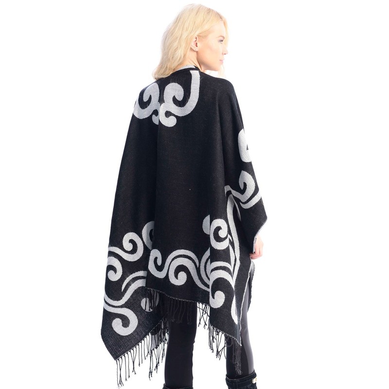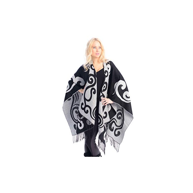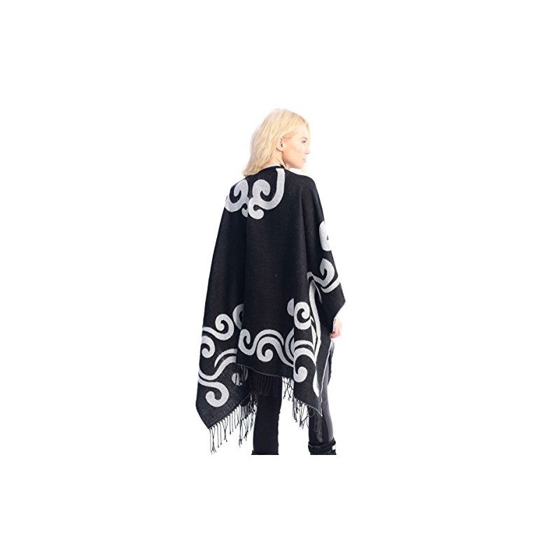 BYOS Womens Winter Reversible Swirl Pattern Open Front Shawl Warp Ruana