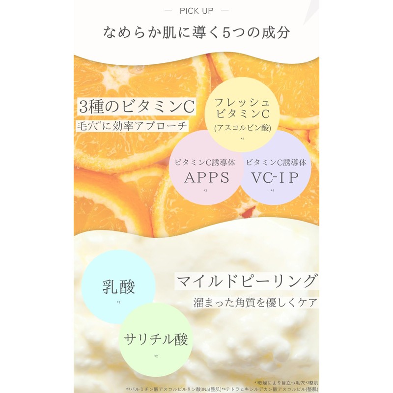 - [Foam Pack/Pores & Texture] Smooth ingredients (raw vitamin C*, linoleic acid, peeling ingredient) Instant carbonation for pores and rough care