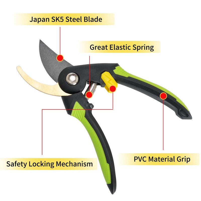 - ✂【Pruning Shears】: Use Japanese SK-5 Steel blade is super durable and sharp enough. Fully hardened, precision-ground steel blade stays sharp, even through heavy use. The Pruner has a hardened steel blade that stays sharp.