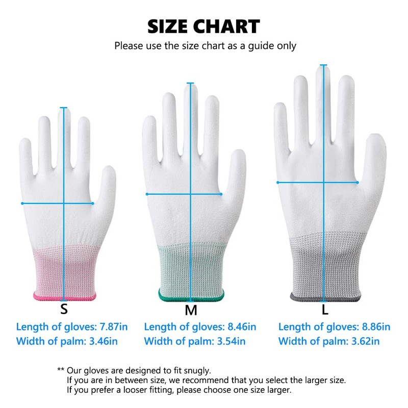 • AVAILABLE IN THREE PRACTICAL SIZES – Choose from S (for palm length approx. 6.7"), M (approx. 7.1"), or L (approx. 7.5") for a snug and natural fit. Each size is proportioned to support dexterity and comfort throughout the workday without compromising flexibility.