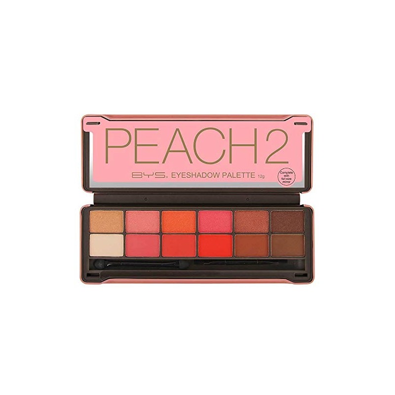 BYS Peach 2 Eyeshadow Palette Tin with Mirror Applicator 12 Matte & Metallic Shades