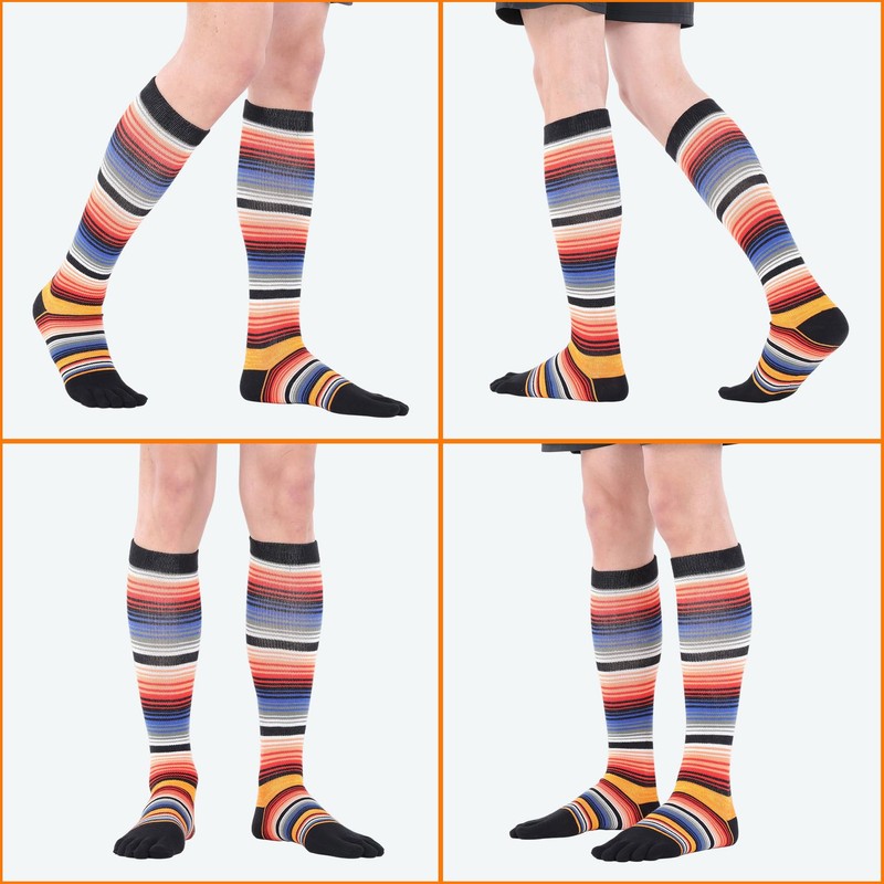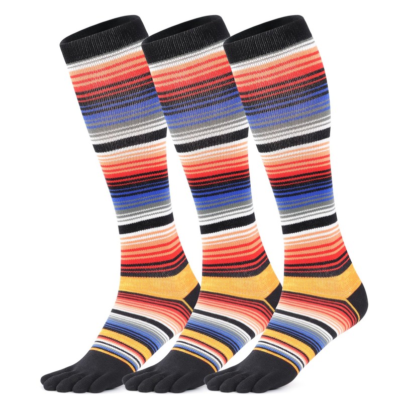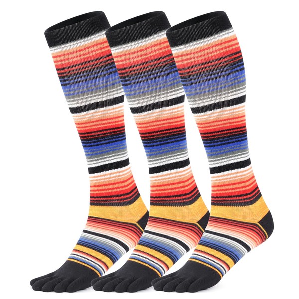 bysock Knee High Toe Socks for Women Men Rainbow Stripe Toe Separated Socks Comfortable Casual Cotton Compression Long Sock Small 3Pairs