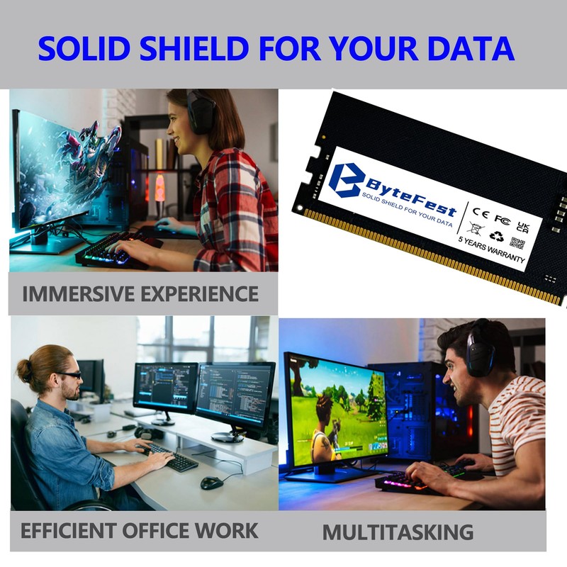 - Compatible DDR5 Desktop:ByteFest RAM Memory compatible for desktop Computers, (Refer to your system's manual to ensure compatibility). The general type of Memory is DDR5, not DDR4, nor DDR3, please confirm your motherboard is DDR5 before purchase. The ddr5 ram 24gb is tailor-made for gamers and enthusiast who are pursuing speed, design, and quality all at once.
