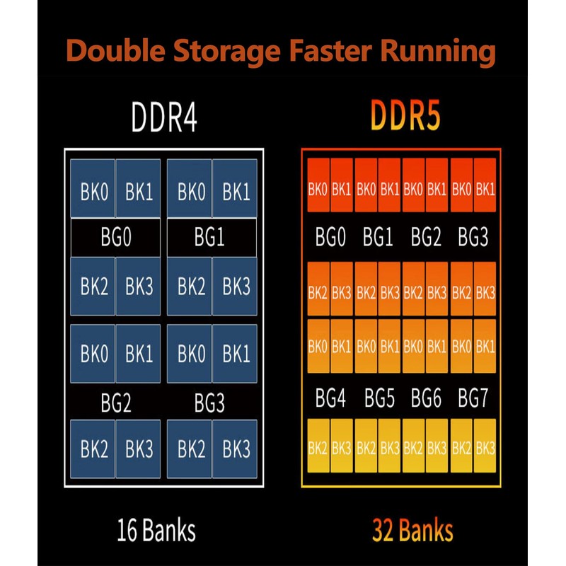 - Efficient Operation:The ECC function is added directly into the pellet chip. Compared to DDR4, which needs to be corrected by the CPU, DDR5 can detect and correct errors generated during data storage and operation on its own, which guarantees stability during high-frequency operation and reduces the burden on the CPU by a large amount. The ddr5 ram ensure desktop computers run efficiently.