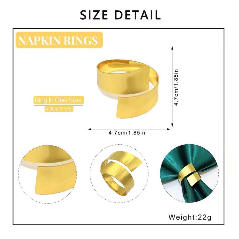 - Size of Thanksgiving Cloth Napkins Rings: The wedding napkins rings measure 1.85 inches in height and the inner diameter is 1.57 inches. Simple yet elegant styling Dress your table for a formal affair, party or for a casual gathering with this napkin rings christmas set of 10.
