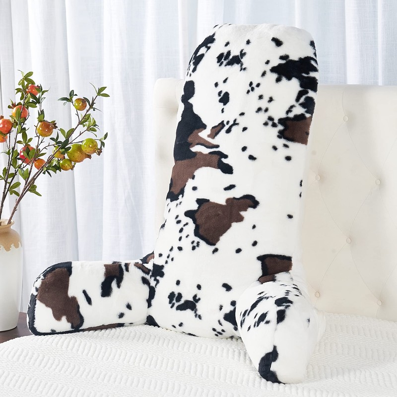 BYTIDE Cow Print Faux Fur Reading Pillow Cover (Cover ONLY, NO Filler) for Shredded Stuffings, 30 Inch High Extra Large Size Removable Bed Rest Pillow Cover with Arms Pockets (Zipper Length 15.8")
