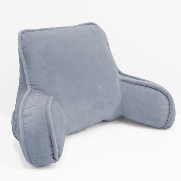 BYTIDE Super Soft Assembly Needed DIY Backrest Reading Bed Rest Pillow with Arms and Pockets 18" H for Sitting in Bed Couch Sofa, Removable Cover and Filling Seprated Set, 20" x 18" x 17", Lilac Grey