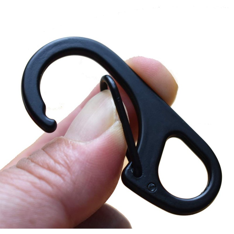 - Note: these are small paracord carabiners with spring loaded hooks,quick connect/disconnect, the eyehole mouth is small(0.39"/10mm).Make sure read carefully the size detail. DON'T USE AS climbing