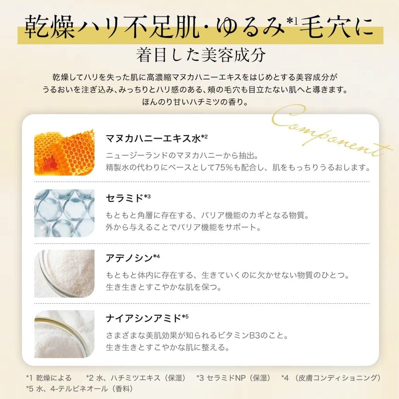 - The highly concentrated manuka honey extract x 2, ceramide x 5, and other serum ingredients will fill your skin with moisturizing and firmness