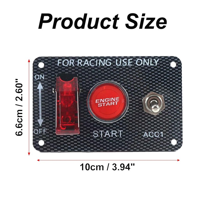 • Versatile Switch Panel: Equipped with 1 on/off red toggle switch, 1 red engine start button, and 1 additional toggle switch for expanded functionality.