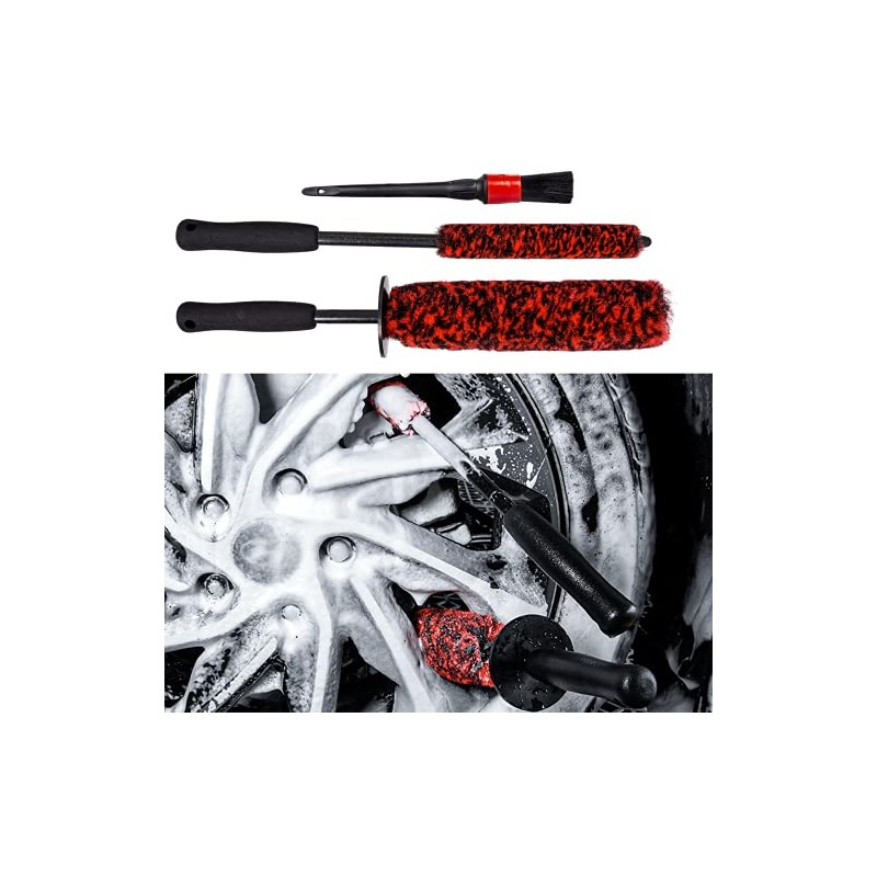 - 【WIDE APPLICATION】 This set includes 3 brushes that can be used to clean the interior and exterior of your car. The large soft brush wheel brush is used for Wheels and rims. The long-handled cleaning brush can easily go deep into the engine compartment, exhaust ports, bumpers, vents, underneath the car, etc. The small automatic detail brush can clean any part of the car.
