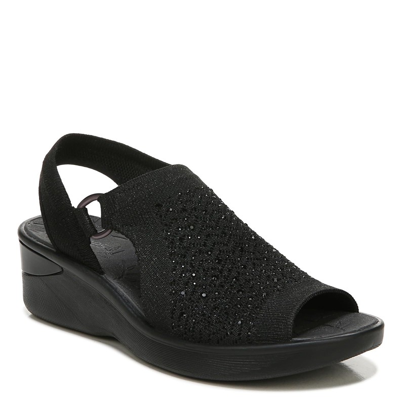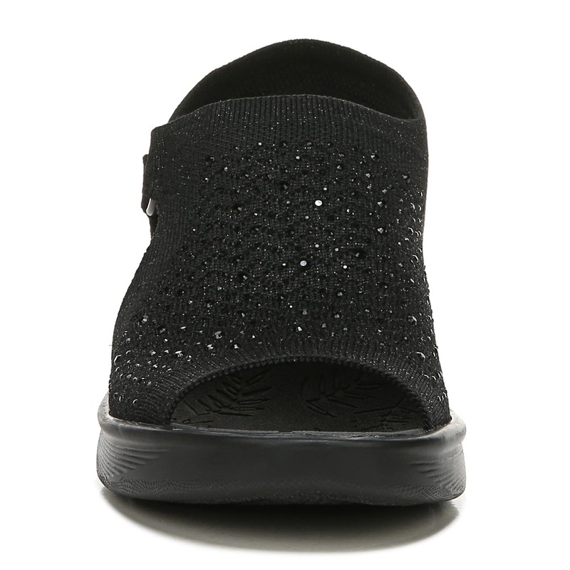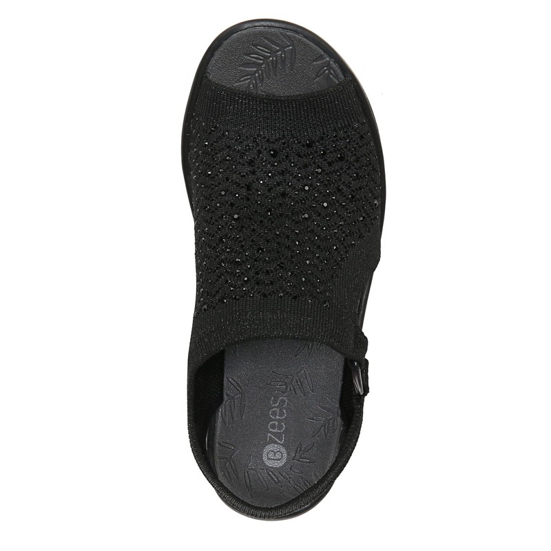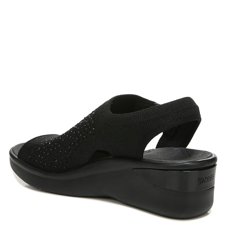 BZees Womens Star Bright Slingback Wedge Sandal Black Sparkle 8 W