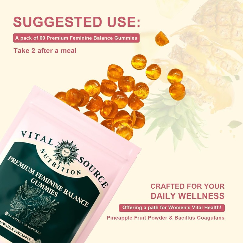 Bzjslt VitaI Source Feminine Balance Gumnnies, GlutenFree, Vegan, Hawaiian Pineapple Flavor-60 Counts