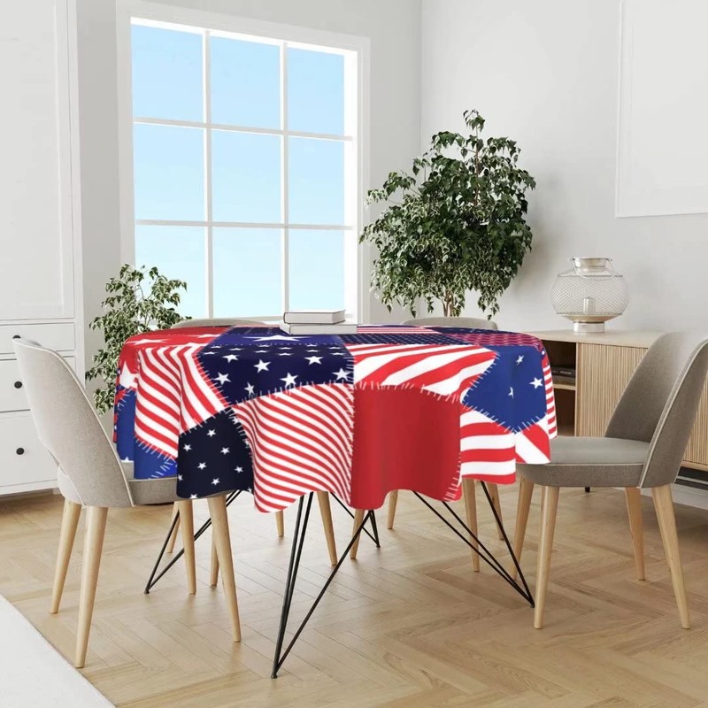 - MASTERFUL Design: The 4th of July round tablecloth adopts single-sided digital printing and heat dyeing technology, the table cover is brightly colored, the image is clear, no peculiar smell, not easy to fade.