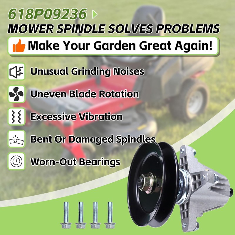• Easy Installation: 618P09236 618-09236 deck spindle assembly comes with four mounting bolts, and the inside of the screw holes are threaded, so you can easily screw the bolts into the holes without having to do extra processing.